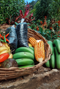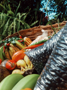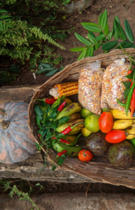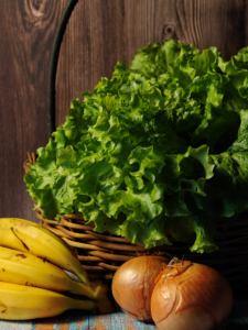 Variedade de frutas, verduras e legumes frescos, colhidos diariamente para sua saúde e bem-estar.